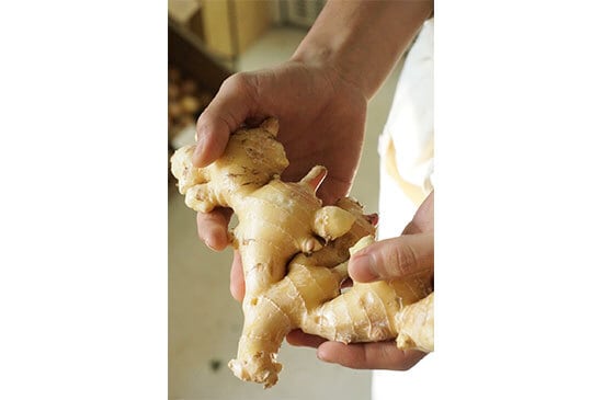 色白でピンク色の濃さが際立つ新生姜はとても美しい。